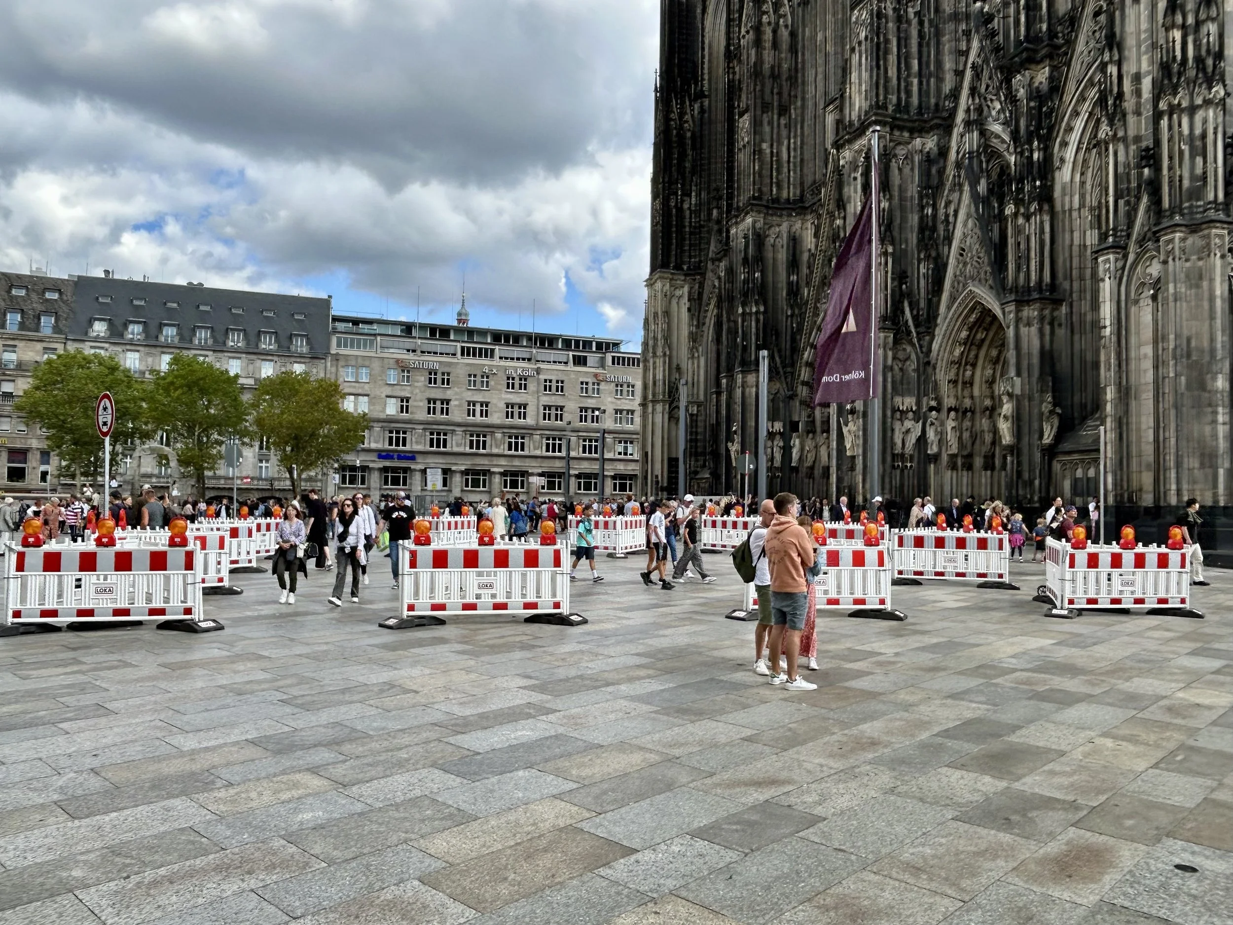 Köln im „Miniaturformat“ auf der Domplatte: Der Platz ist derzeit wegen eines maroden Stützpfeilers der darunter liegenden Tiefgarage von Absperrungen durchzogen.